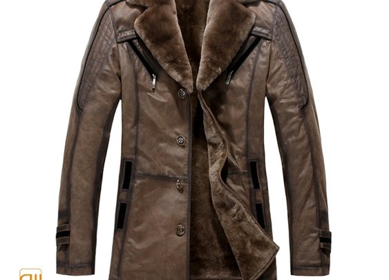 Mens Leather Shearling Coat CW138270 - cwmalls.com