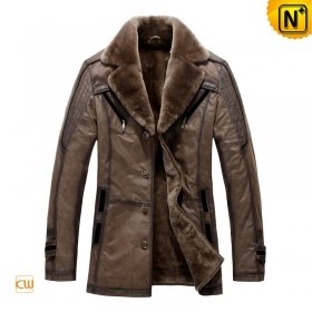 Genuine vintage shearling coats for men (Khaki and Brown) in nubuck cowhide leather and lamb fur lined fabric, cool chest zipper pockets and tailored collar fabulous designer shearling leather coats for men can be the best outwear in winter!