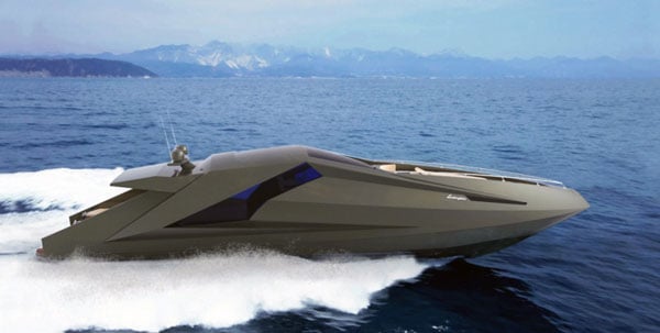 These guys to key aspects off the side's of 3 Lamborghini's and put them together into a boat and then 3d rendered it.