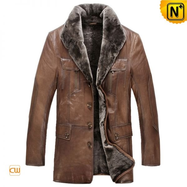 Quality men's shearling sheepskin coat brown made of finest Australia sheepskin leather shell and soft warm shearling lining, best designer shearling sheepskin coat sales at cwmalls.com!